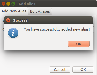 В поле Alias (псевдоним) вам нужно ввести псевдоним команды на ваше усмотрение, который вы будете затем применять вместо распространённой команды, а в поле Command ввести эту самую команду, которая будет выполнена в терминале посредством псевдонима (Alias) и нажать ОК, после чего откроется оповещающее окно о том, что You have successfully added new alias (Вы успешно добавили новый псевдоним):