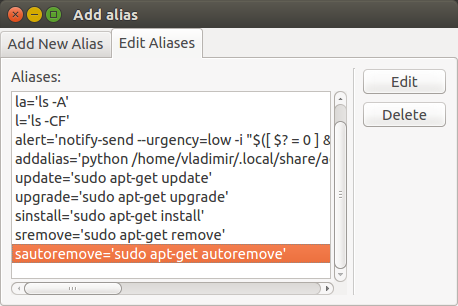 Аddalias является программой с открытым исходным кодом, написанной на Python, которая позволяет нам создавать, удалять и управлять нашими псевдонимами для командной строки (терминала), через понятный графический интерфейс.