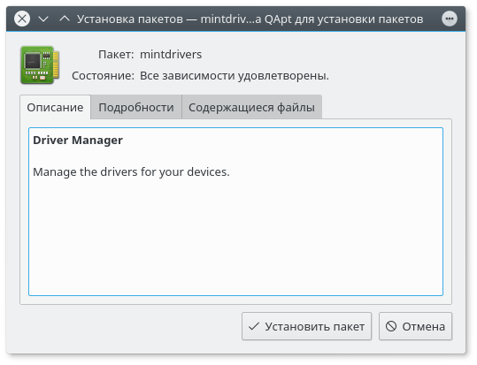 В данном случае можно установить графическое приложение Менеджер драйверов из репозиториев Linux Mint.
