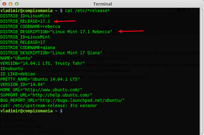После нового входа в систему можете проверить версию дистрибутива следующей командой в терминале: