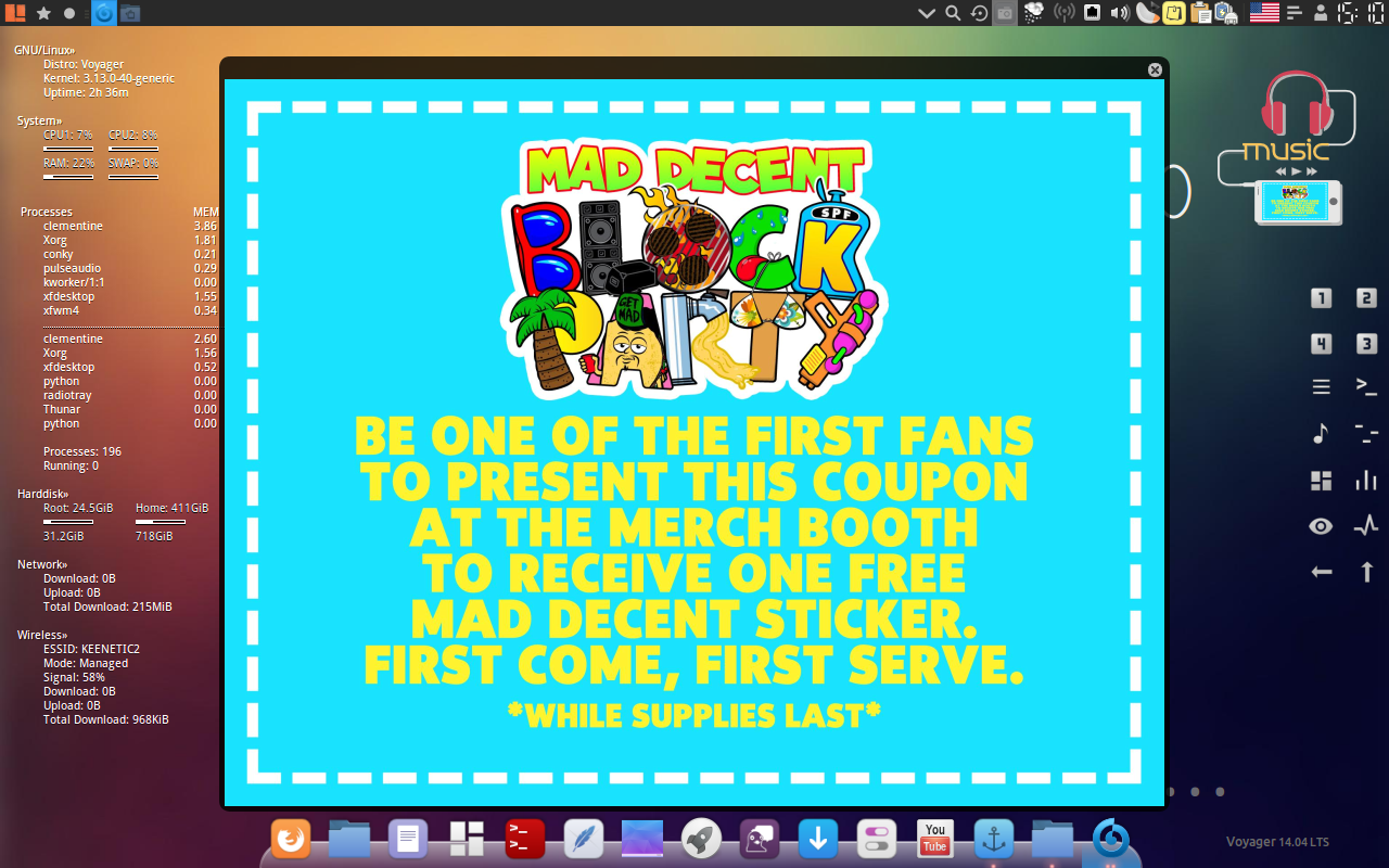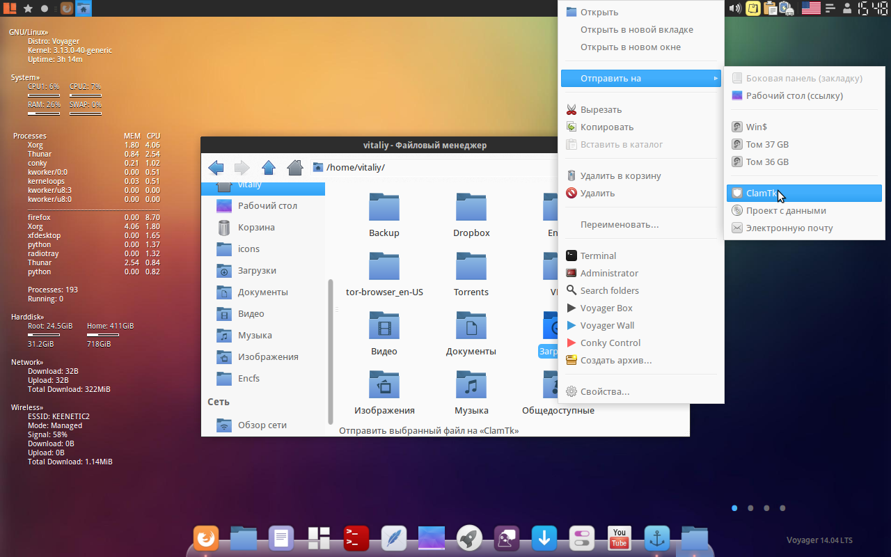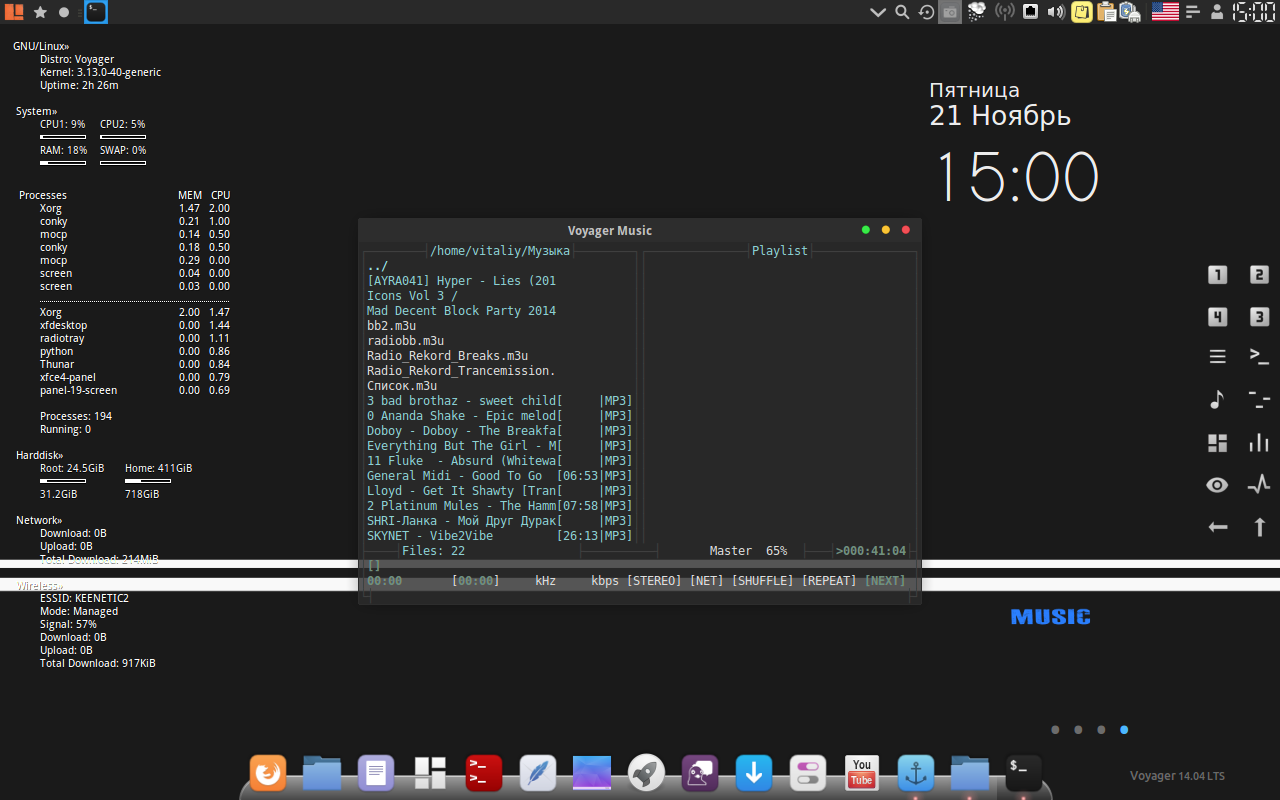 Вышел новый дистрибутив Live VOYAGER 14.04.03 LTS на базе Ubuntu, с конфигурацией рабочего стола XFCE. Дистрибутив отличает отличный внешний вид, стильность, но в то же время продуманность и минимализм. Вы скажете, что отличный внешний вид помеха минимализу, отнюдь! Лёгкость и грациозность этой системы сочетается с истинными принципами "unix way", использующими мощные и лёгкие консольные приложения.