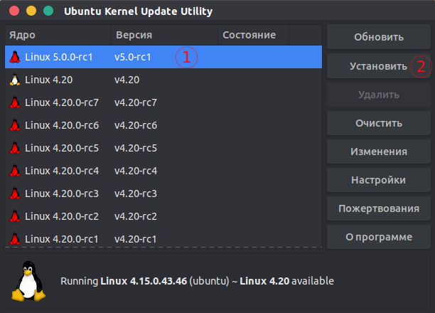 Установка графической утилиты установки/удаления ядра - Ukuu