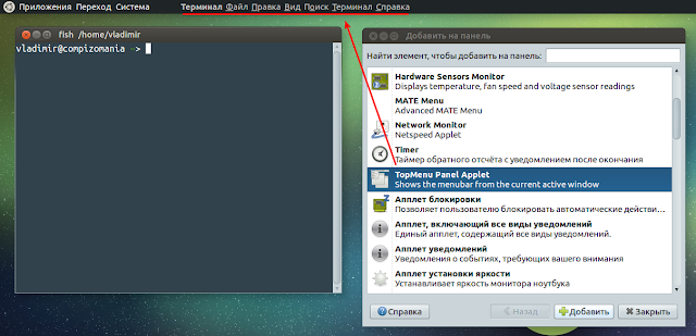 Либо выбрать конфигурацию панели в MATE Tweak - Интерфейс - Mutiny, с активированным по умолчанию Глобальным меню: