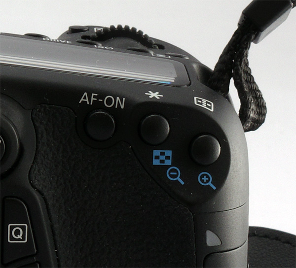 Справа сверху на задней части камеры: кнопка блокировки фокусировки, кнопка фиксации экспозиции и кнопка выбора точки фокусировки. Последние две кнопки в режиме просмотра материала работают на уменьшение и увеличение масштаба.