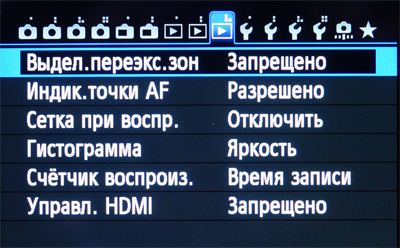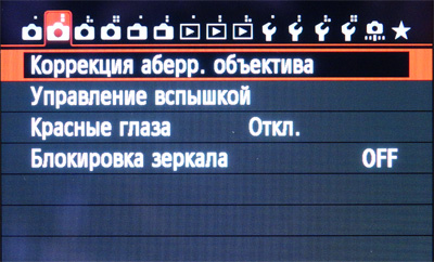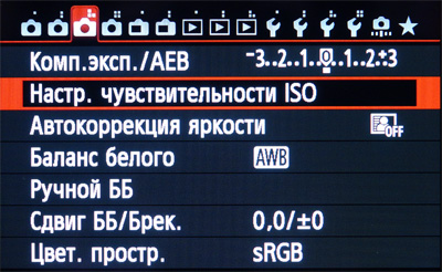 У зеркальных камер Canon меню подробное, удобное и понятное. Группы настроек разбиваются по вкладкам, при этом вертикальное скроллирование во вкладках не требуется, все умещается на один экран.