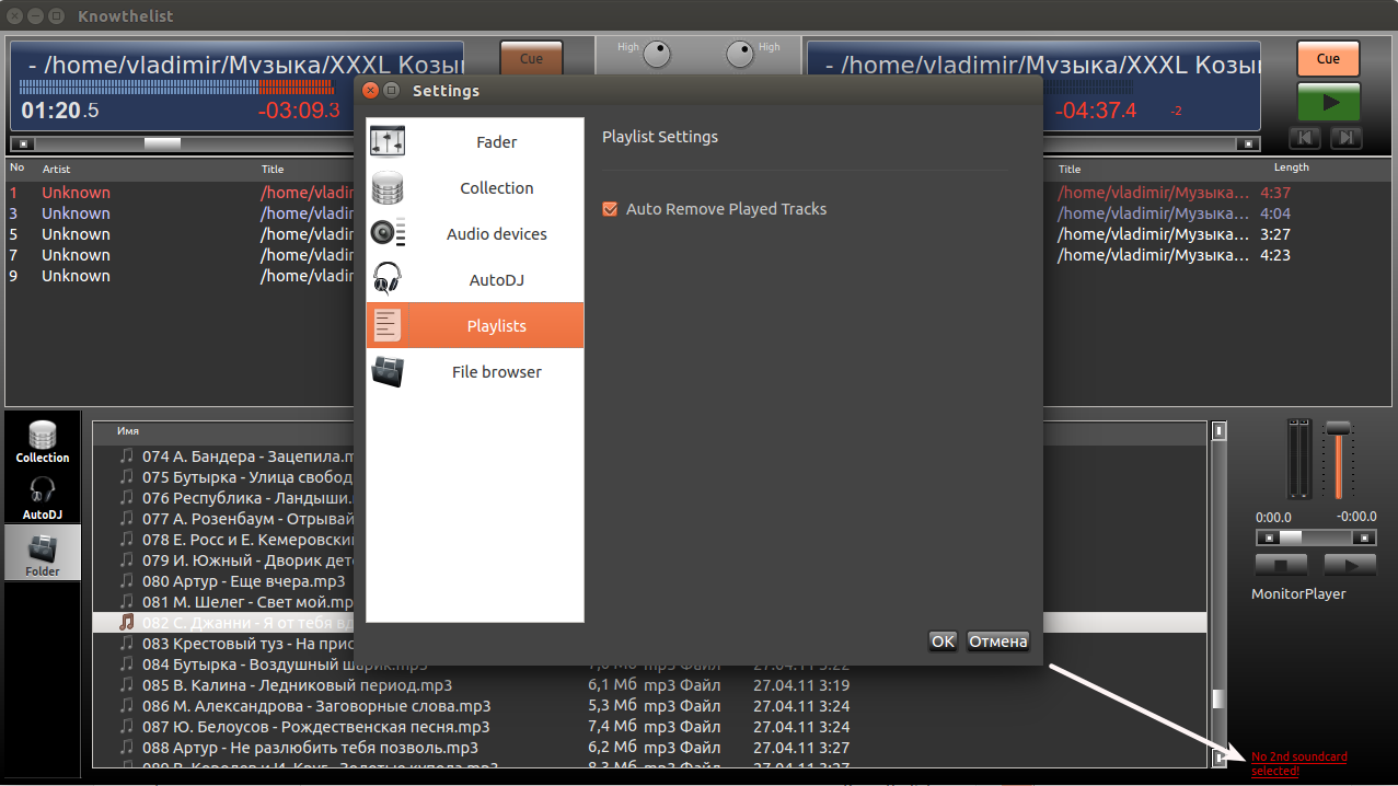В этой статье я хочу познакомить вас ещё с одним проектом для начинающего диджея - Knowthelist, который позволяет легко управлять нашей фонотекой с помощью простого и интуитивно понятного графического интерфейса, написанного на Qt.